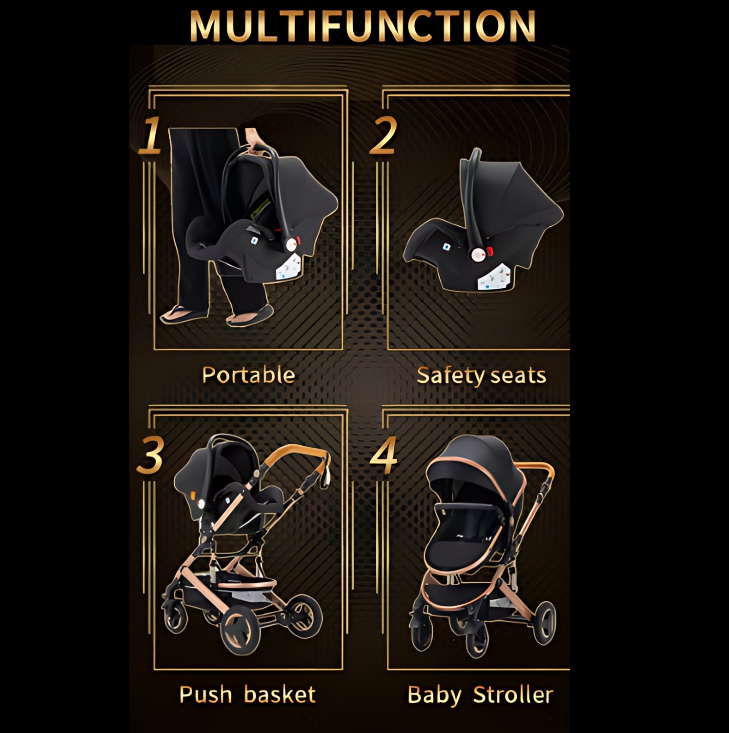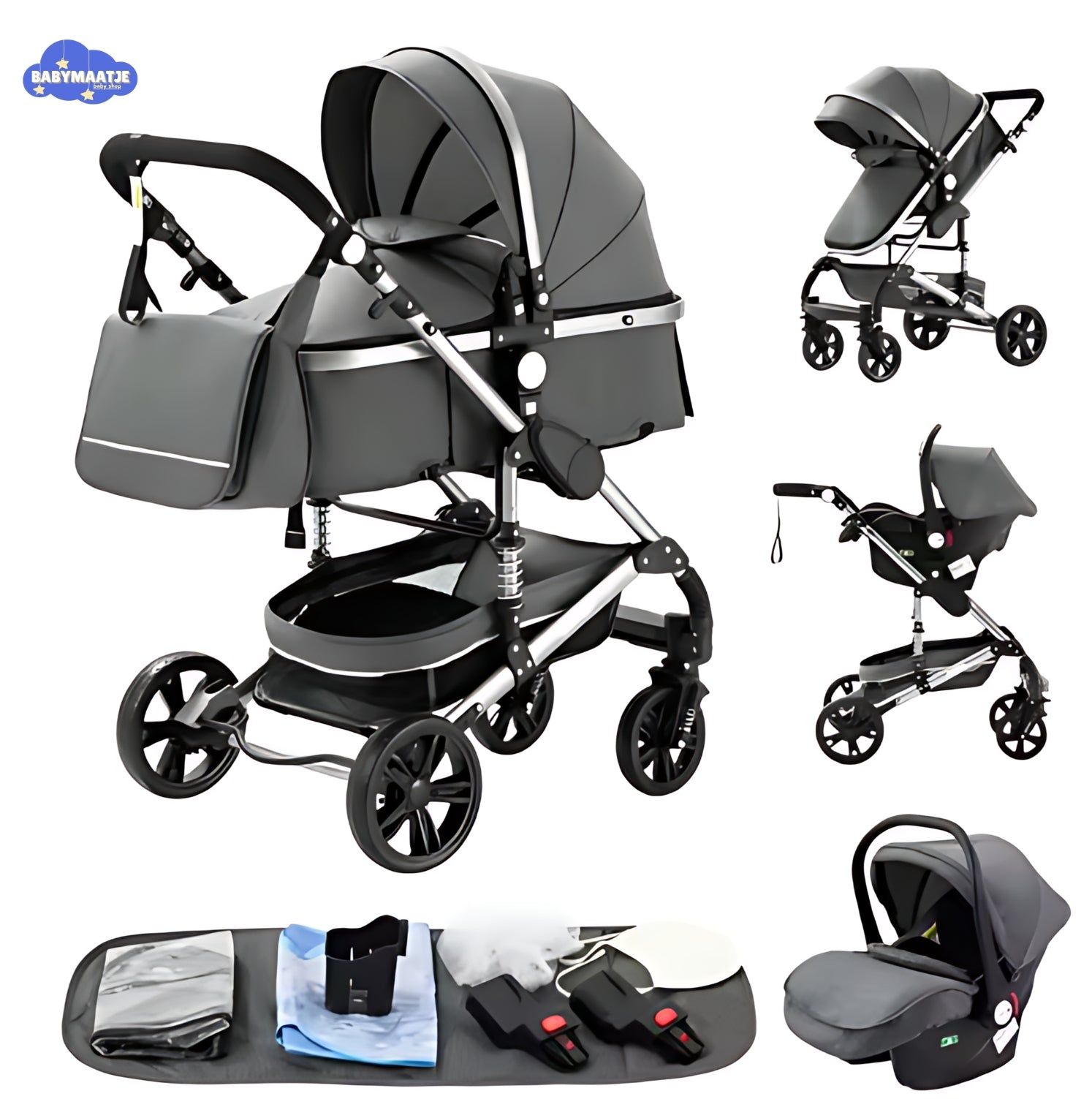 De Luxe 3-in-1 Kinderwagen Set biedt stijl, gemak en veiligheid voor moderne ouders. Bestel nu en geniet van een zorgeloze kinderwagenervaring!