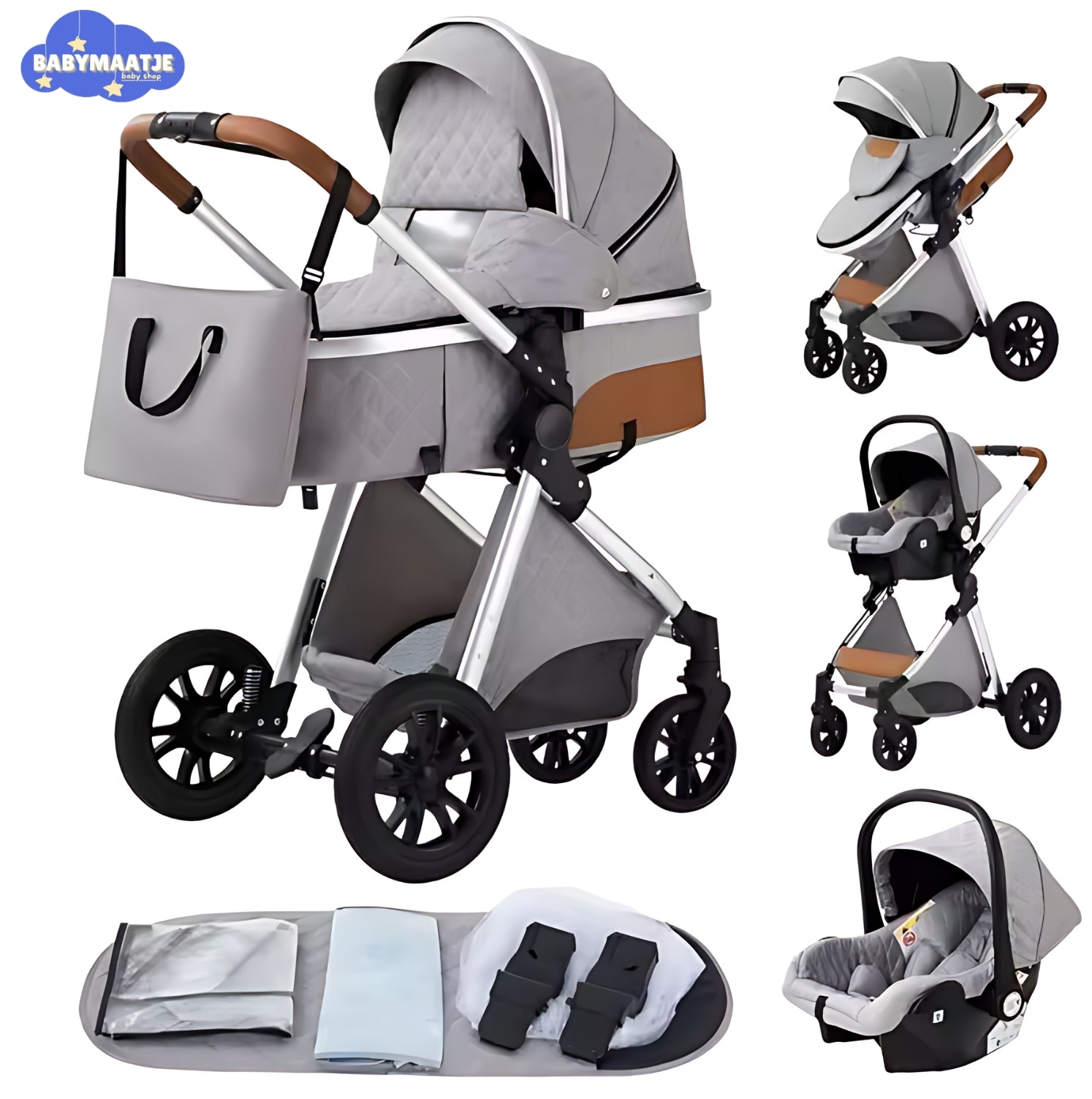 De Luxe 3-in-1 kinderwagen biedt ultiem gemak en comfort voor zowel ouder als kind. Deze stijlvolle kinderwagen kan eenvoudig worden omgebouwd van een wieg naar een autostoeltje en naar een zitting voor oudere baby's. Geschikt voor kinderen van 0 tot 3 jaar en met een draagvermogen tot 20 kg.