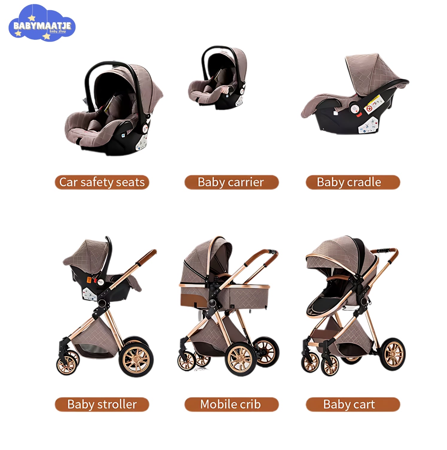 De Luxe 3-in-1 kinderwagen biedt ultiem gemak en comfort voor zowel ouder als kind. Deze stijlvolle kinderwagen kan eenvoudig worden omgebouwd van een wieg naar een autostoeltje en naar een zitting voor oudere baby's. Geschikt voor kinderen van 0 tot 3 jaar en met een draagvermogen tot 20 kg.